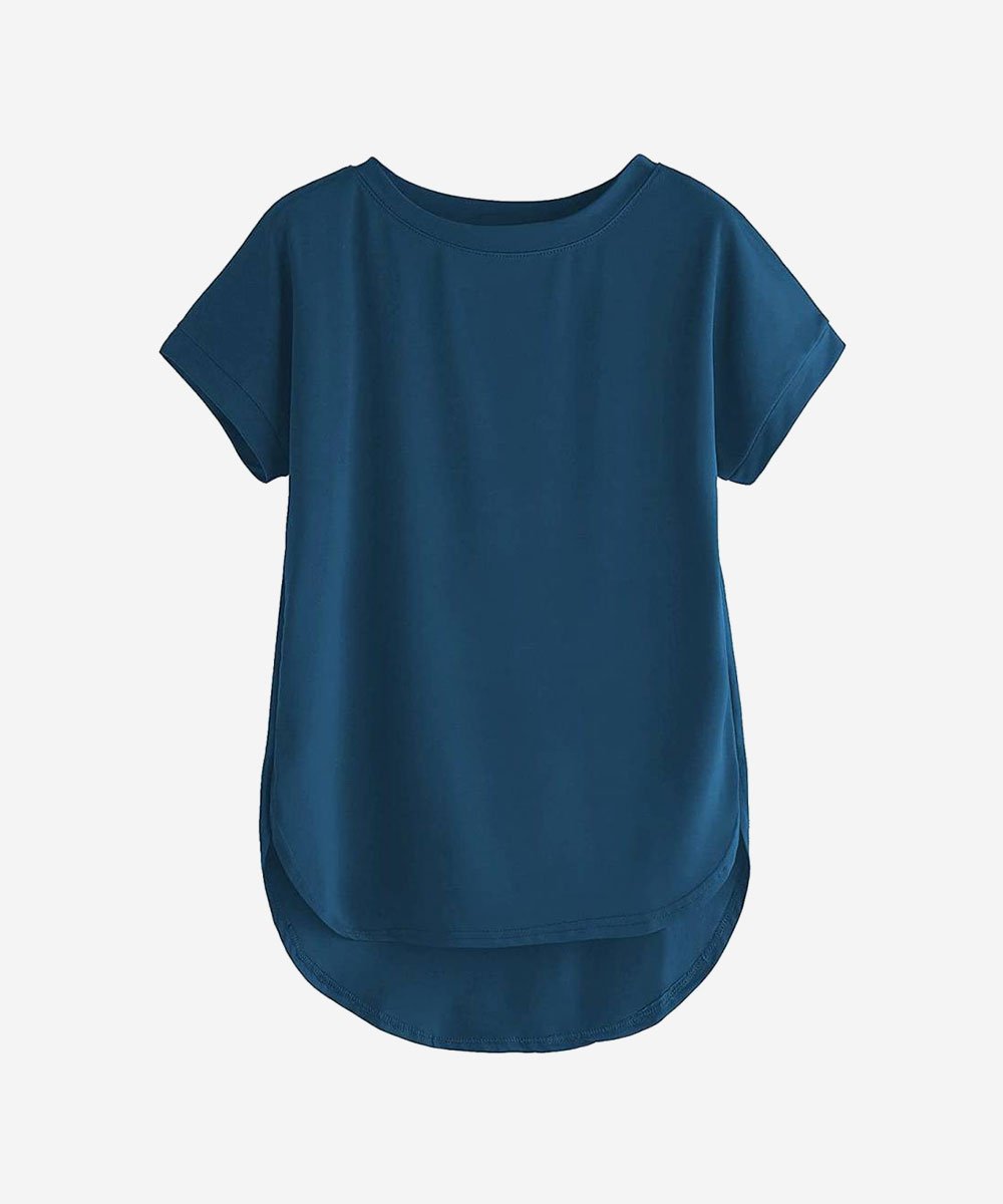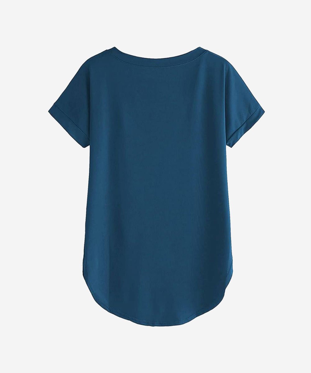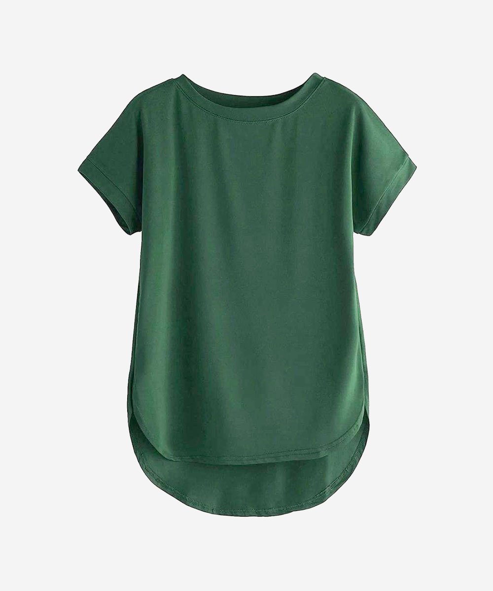 Features: crew neckline, button-back detail, short sleeves with rolled-up cuffs, straight hemline, side slits. Fit: semi-fitted; follows the lines of the body with added wearing ease. Length: missy length 25-1/4″ to 27-5/8″.